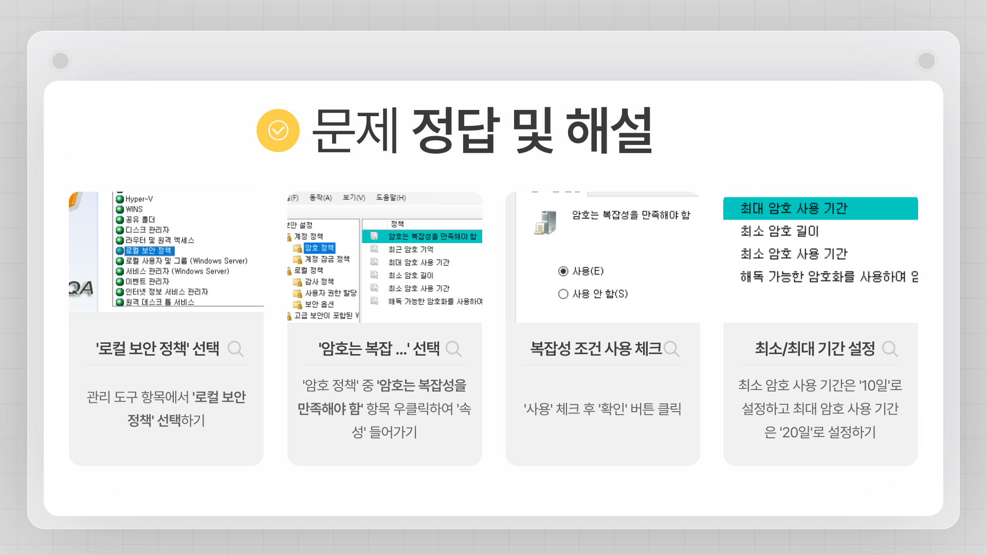 - 패스워드 사용 기간: 최소 10일에서 최대 20일